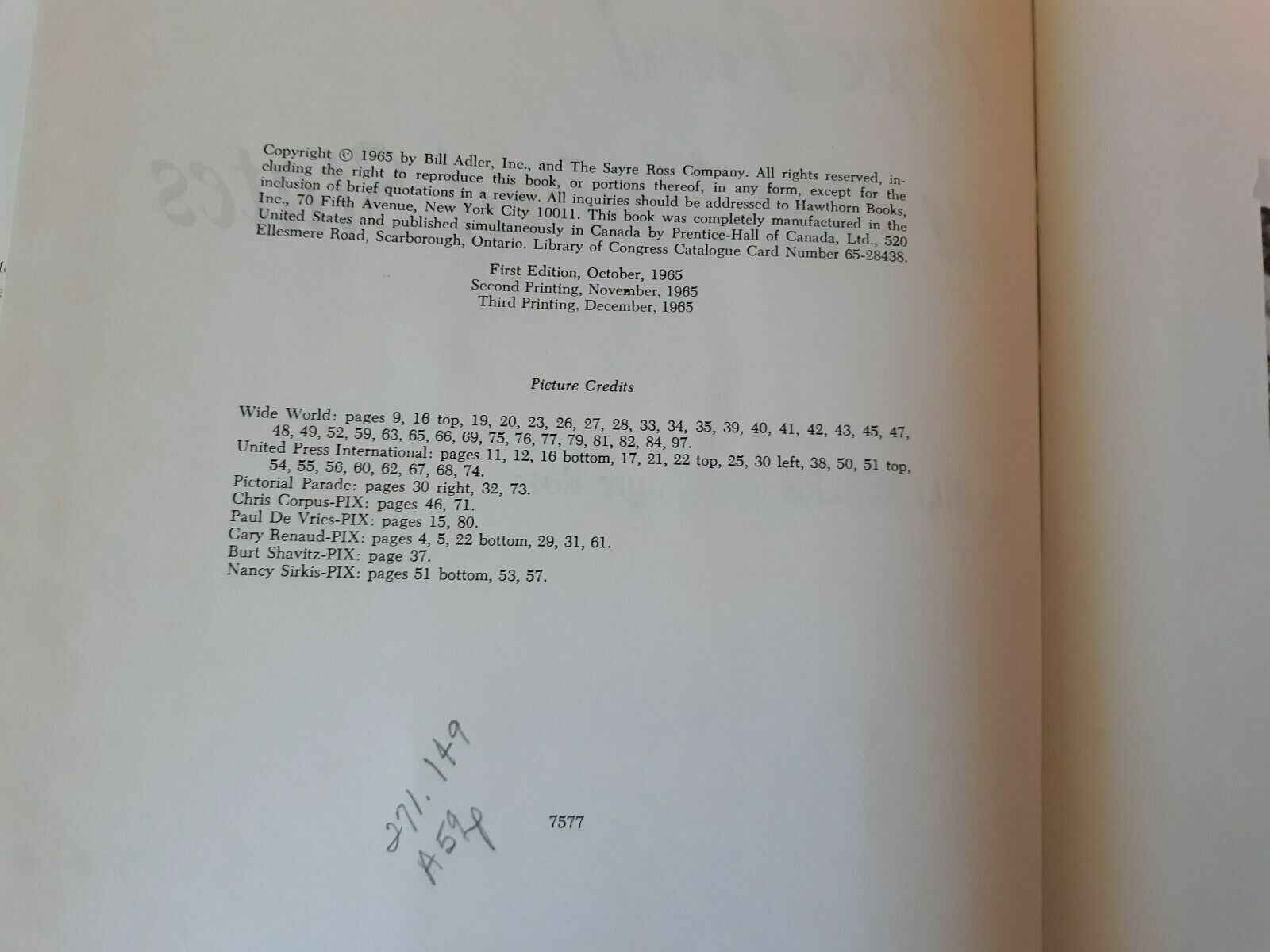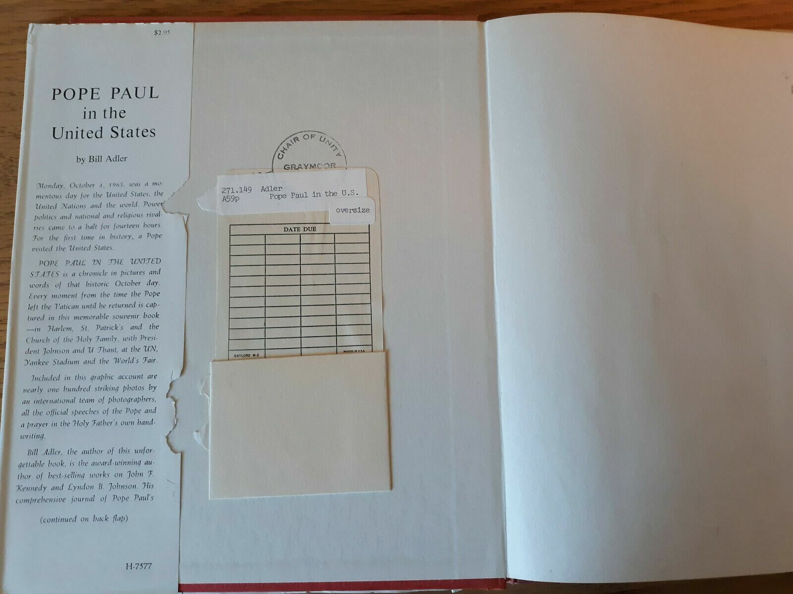 1965 Pope Paul in the United States by Bill Adler Hardcover 3rd Printing