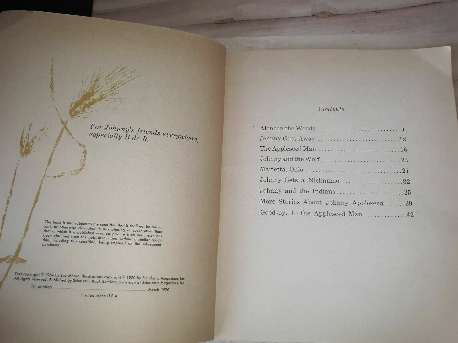 1970 Johnny Appleseed by Eva Moore Scholastic 1st Printing