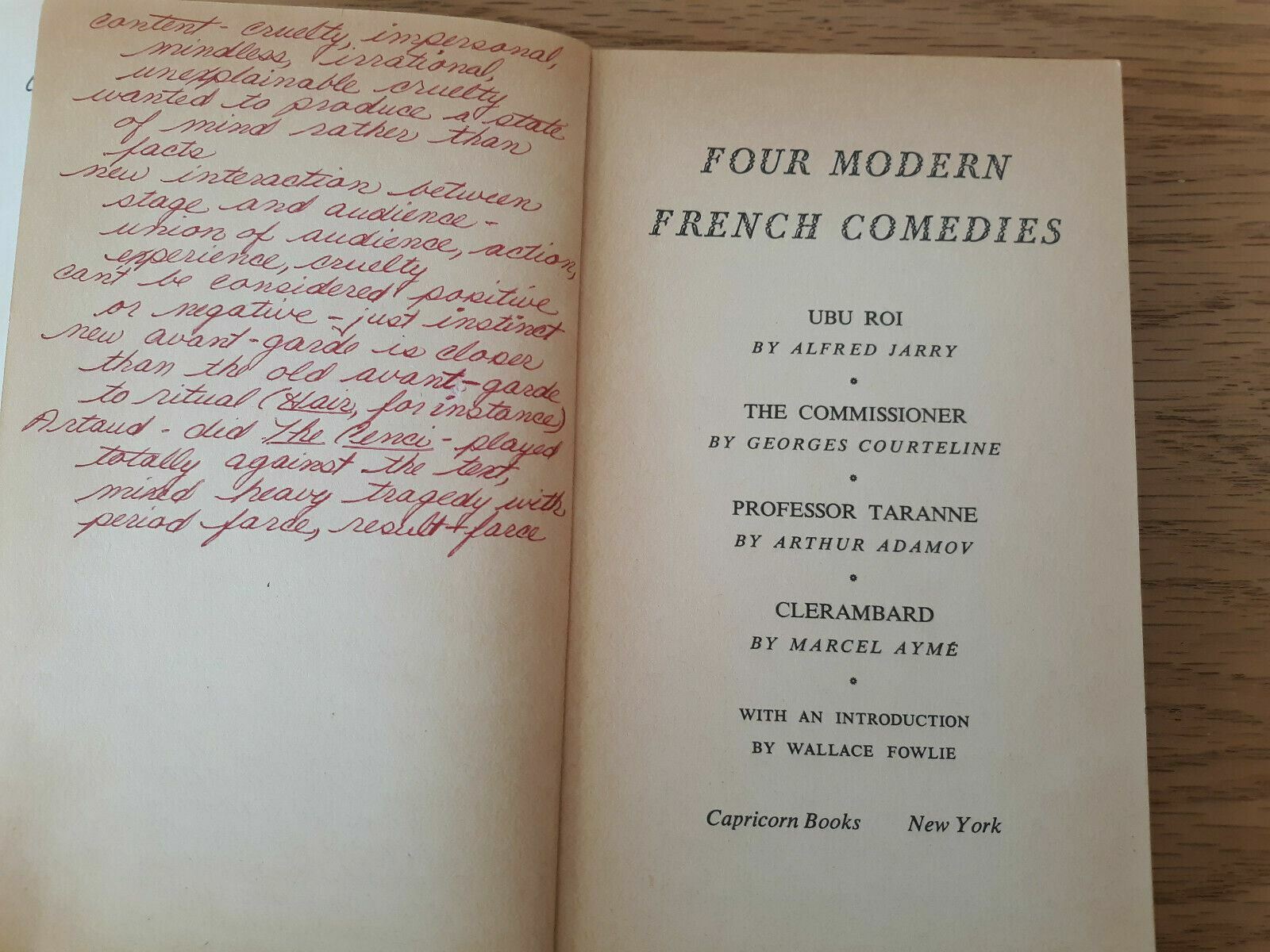 4 Modern French Comedies Ubu Roi The Commissioner Professor Taranne Clerambard 1960