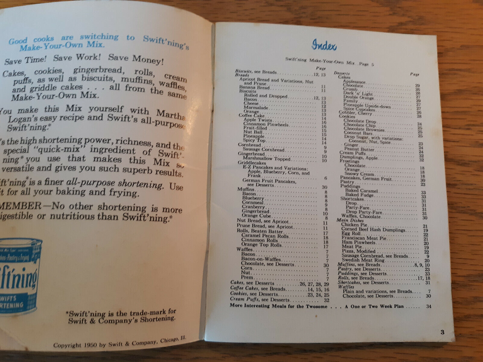 77 Recipes Using Swiftning 1950 Cookbook Cook Book Swift Martha Logan Booklet B
