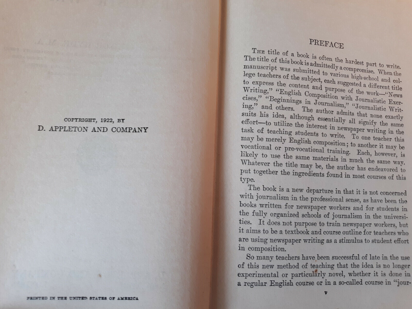 A Course In Journalistic Writing Grant Milnor Hyde 1922 Hardcover D. Appleton