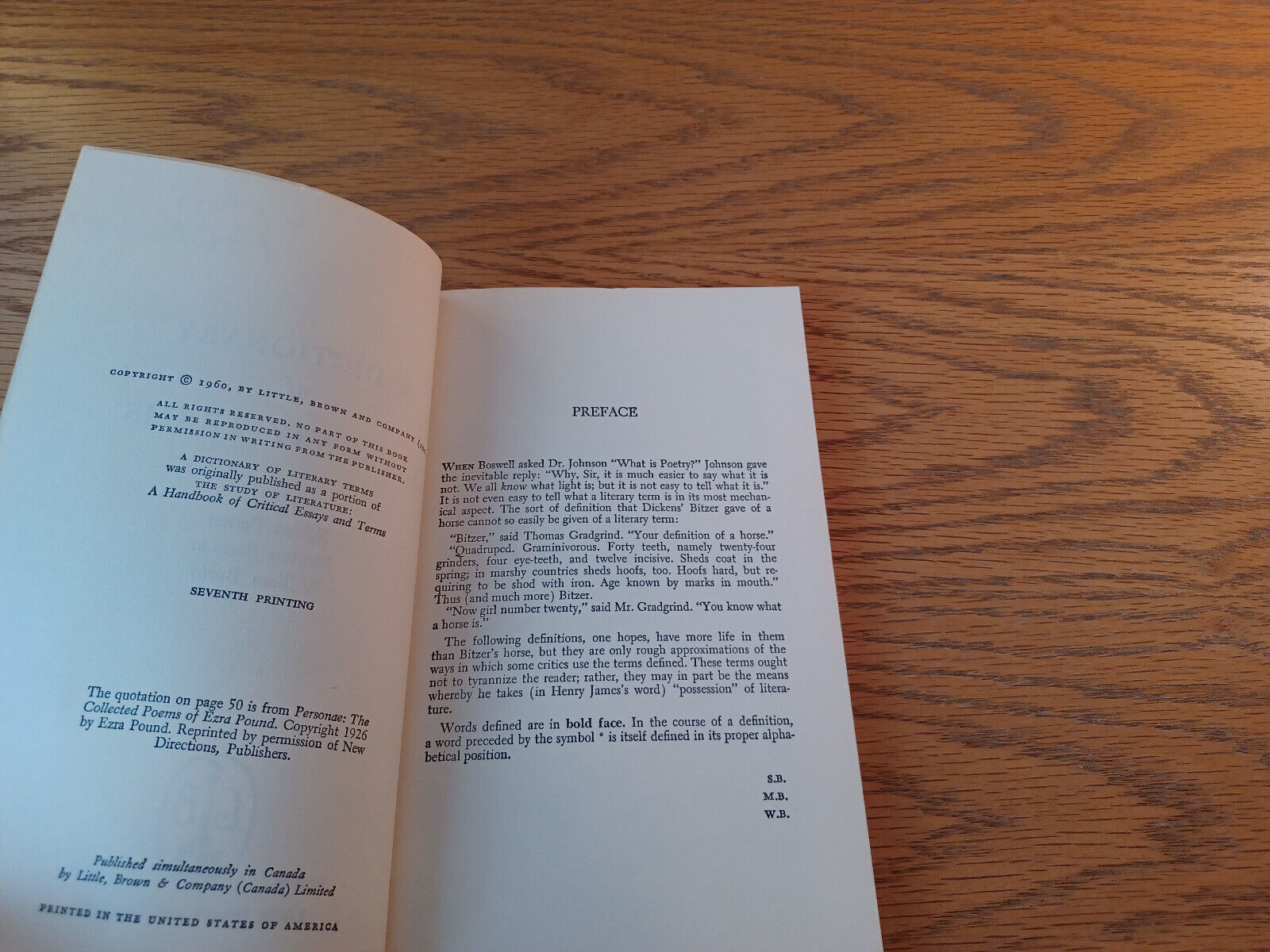 A Dictionary Of Literary Terms Sylvan Barnet 1960 Paperback Little Brown