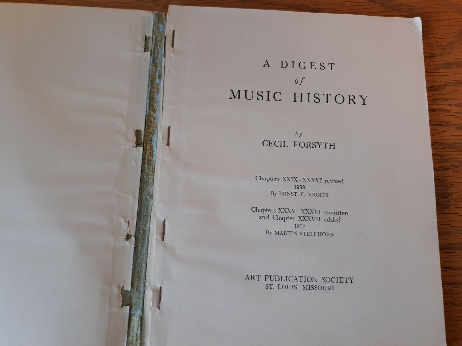 A Digest Of Music History Cecil Forsyth 1952 Art Publication Society Paperback