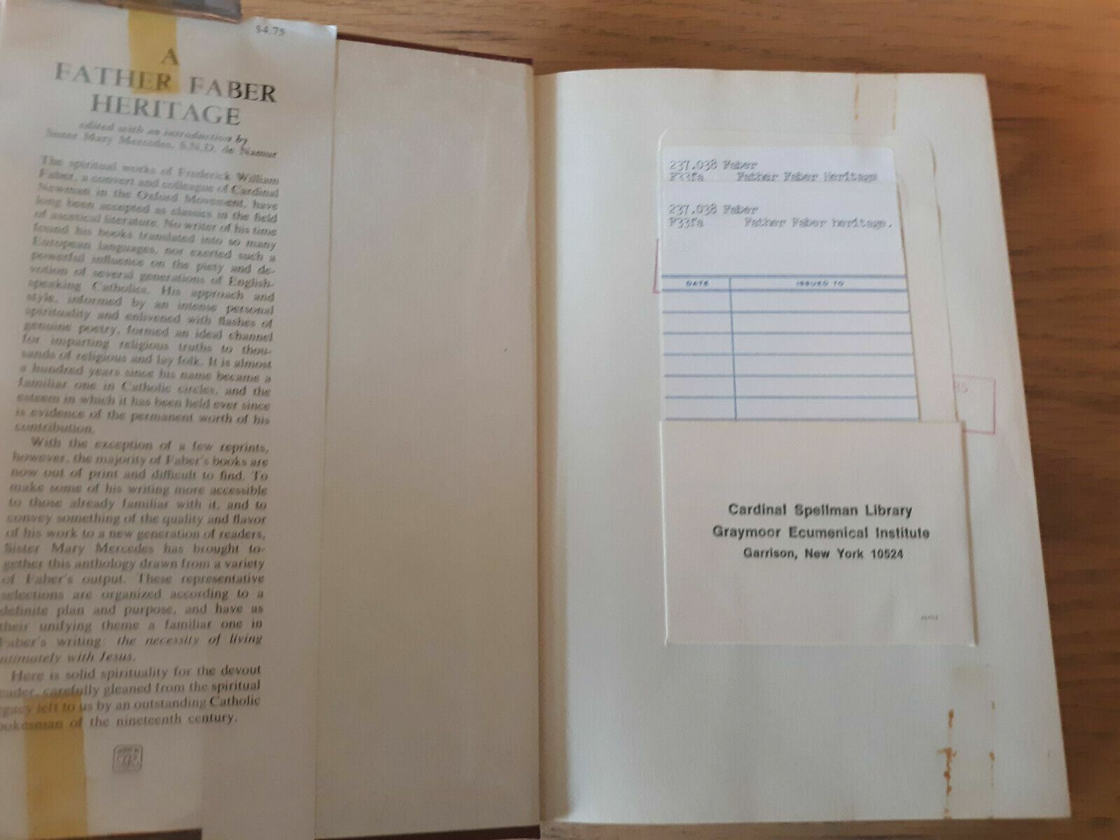 A Father Faber Heritage Selections from the Writings of F. W. Faber 1958 HC/DJ