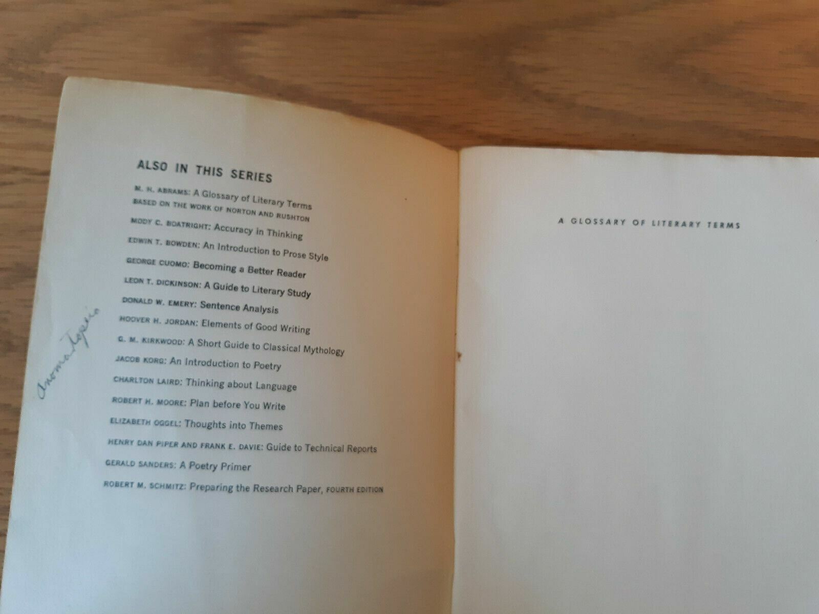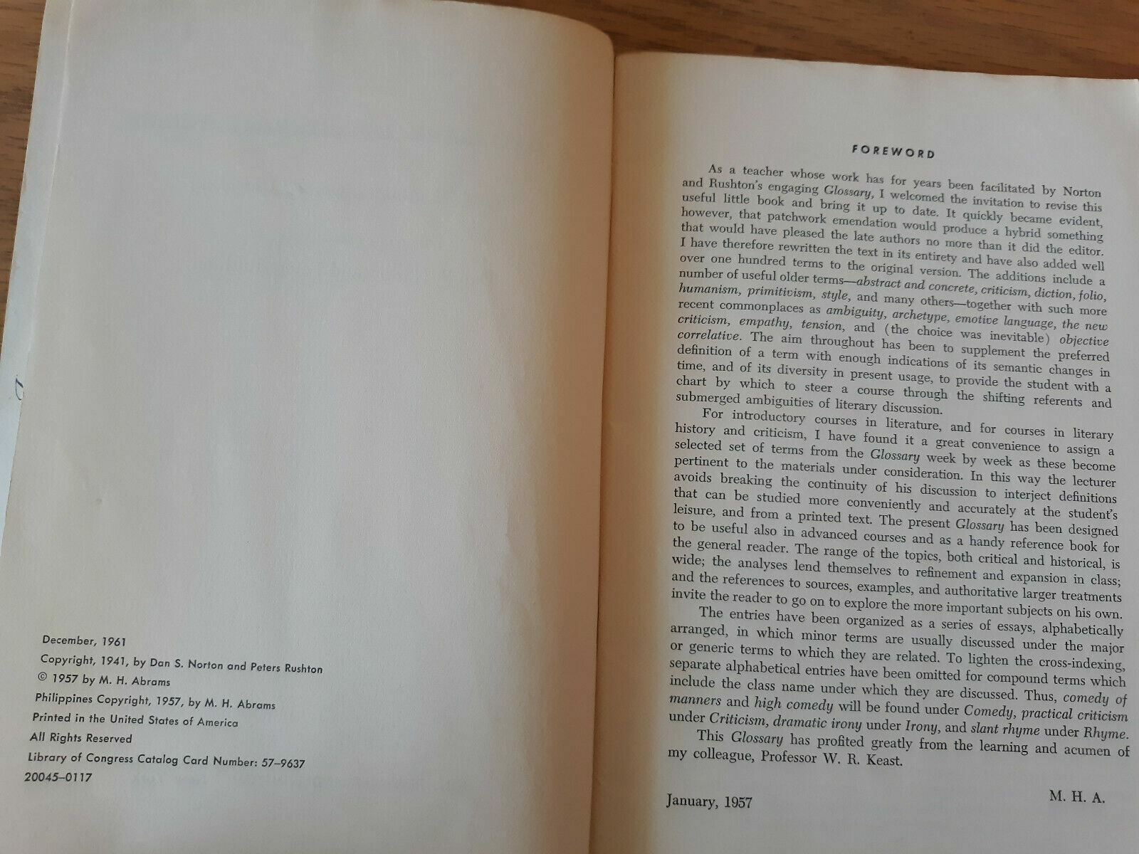 A Glossary of Literary Terms, Revised by M. H. Abrams 1961 Paperback
