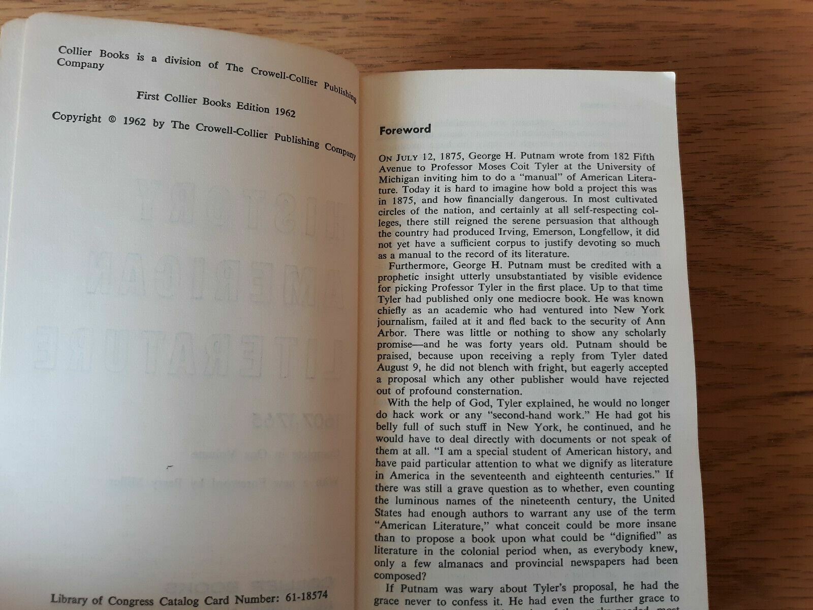 A History of American Literature, 1607-1765 by Moses Coit Tyler 1962