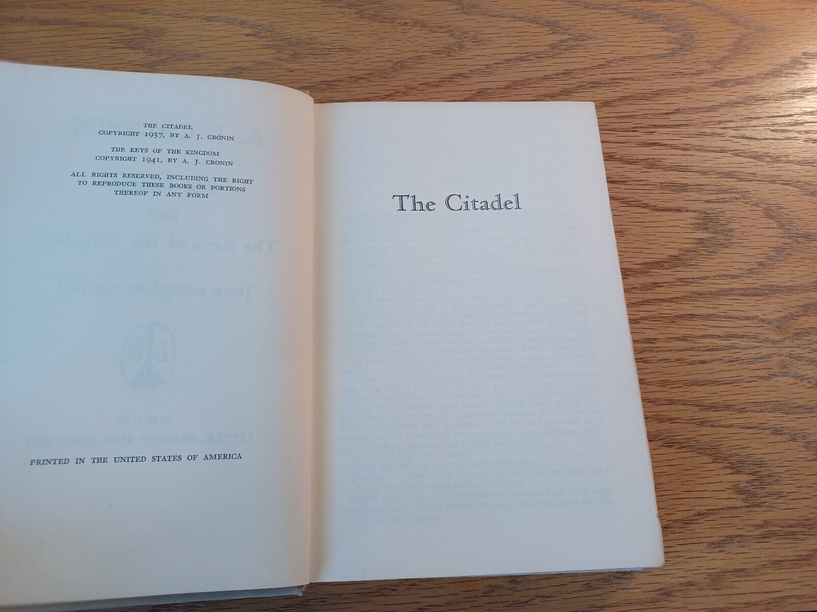 A J Cronin The Citadel And The Keys Of The Kingdom 1941 Hardcover