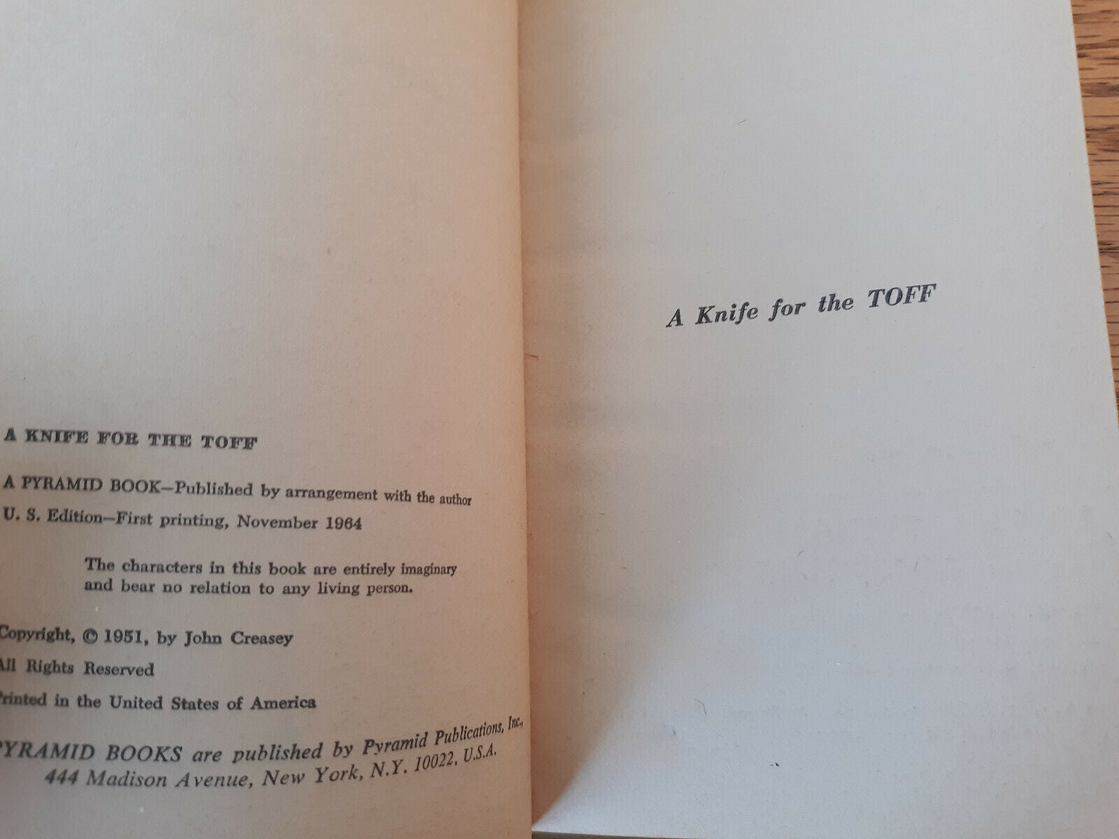 A Knife For The Toff John Creasey 1964 Paperback Pyramid Books