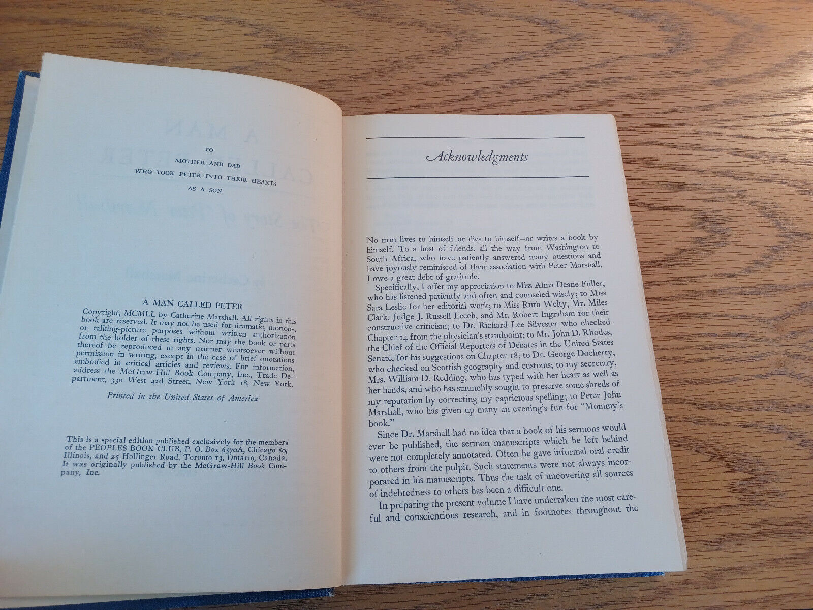 A Man Called Peter The Story Of Peter Marshall Catherine Marshall 1951 Peoples Book Club