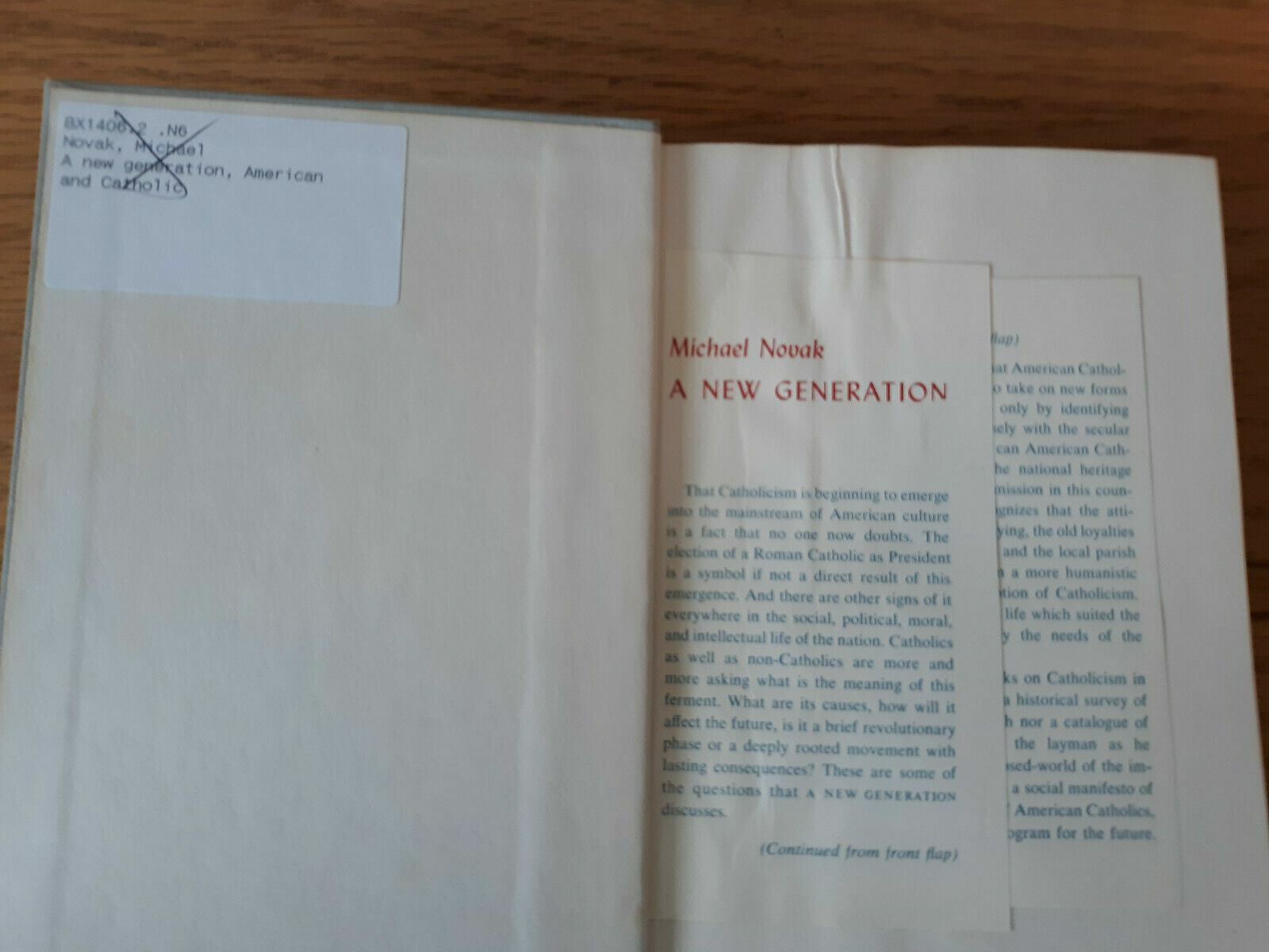 A New Generation American And Catholic Hardcover 1964 by Michael Novak