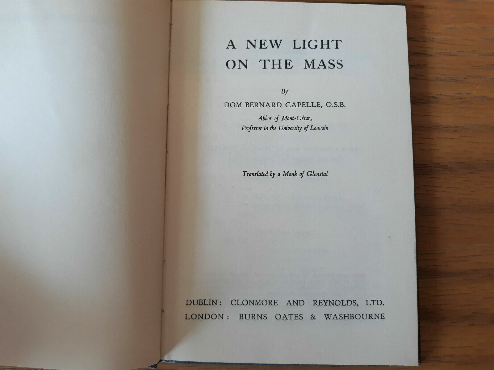 A new light on the Mass Hardcover 1961 by Bernard Capelle (Author)