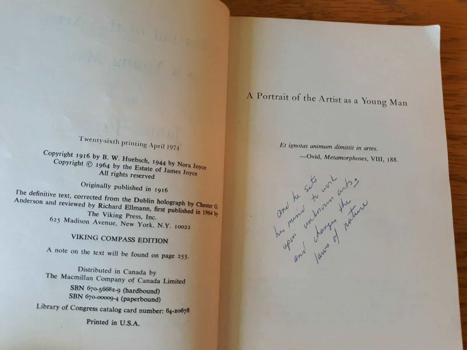 A Portrait of the Artist as a Young Man James Joyce Viking Paperback 1974