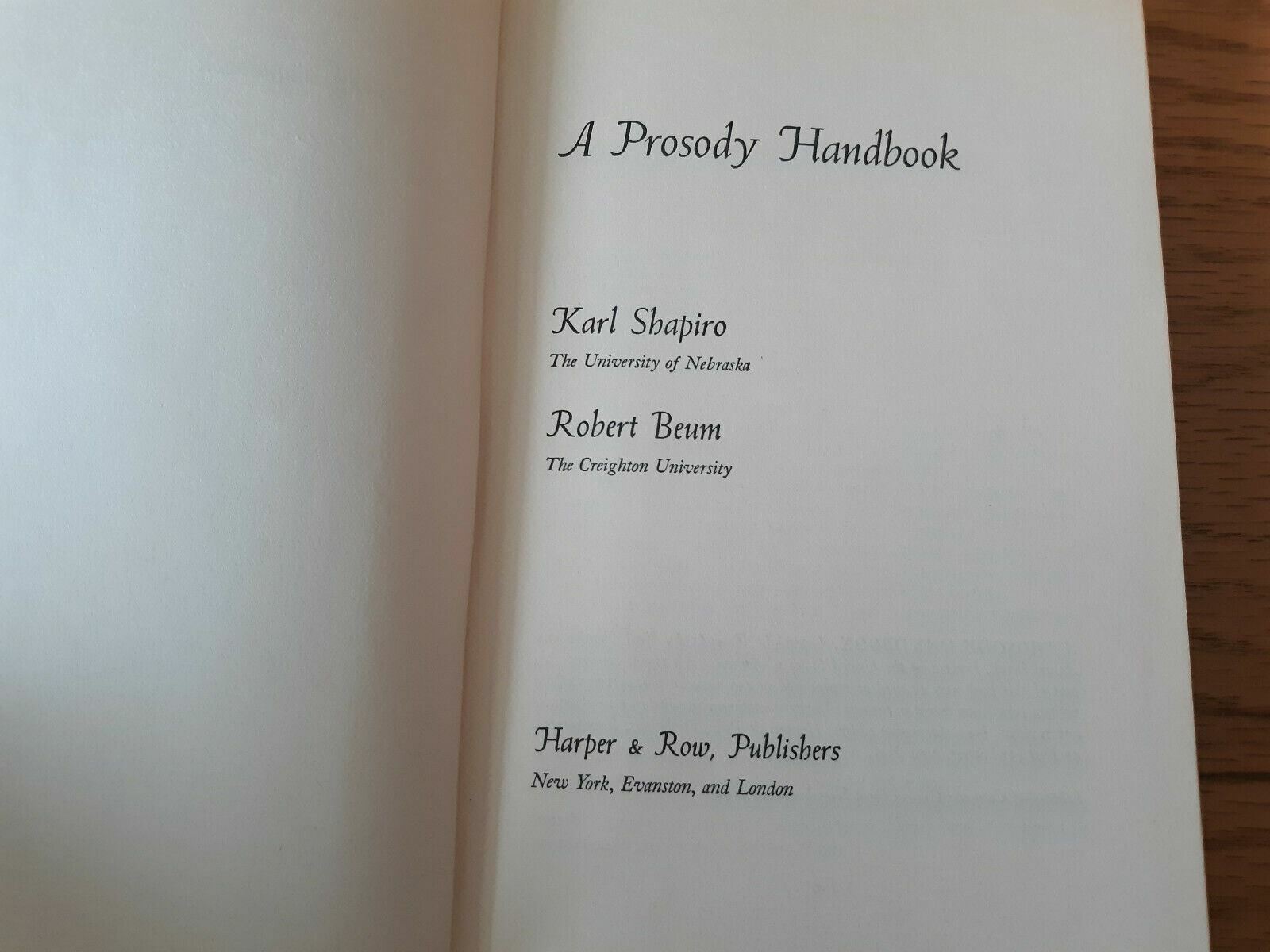 A Prosody Handbook By Karl Shapiro - Pub: Harper & Row (1965) HC