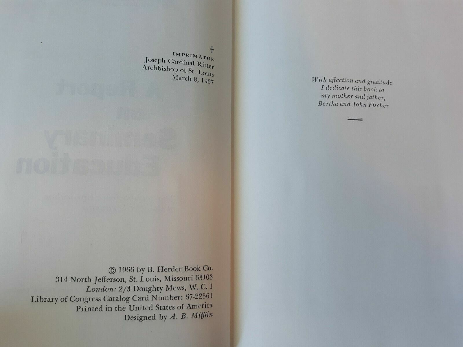 A report on seminary education 1967 Thomas R Fischer HC/DJ