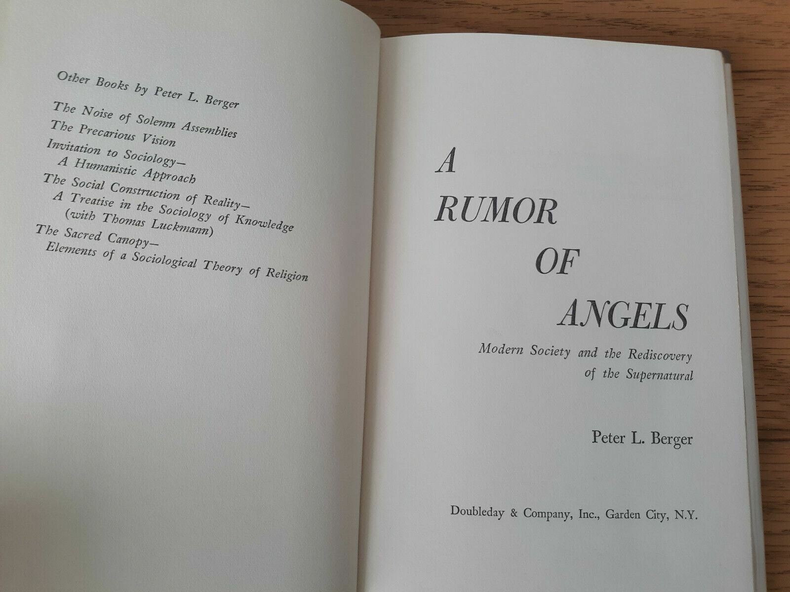 A Rumor of Angels: Modern Society Supernatural by Peter L. Berger HC/DJ 1st 1969