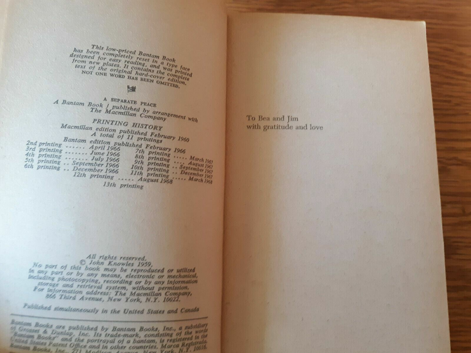 A Separate Peace - by John Knowles - 1968 Paperback Bantam