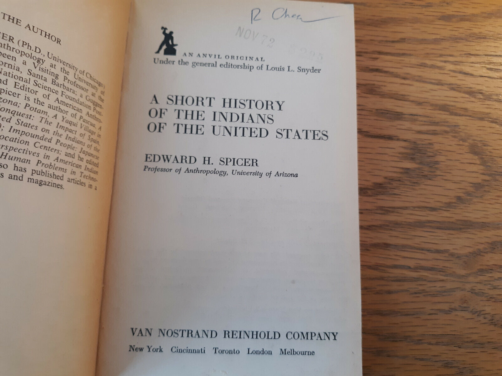 A Short History Of The Indians Of The United States Edward H Spicer 1969 Van Nostrand Reinhold