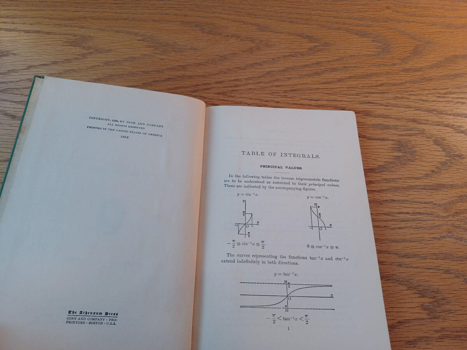 A Short Table Of Integrals B O Peirce 1929 Hardcover Ginn And Company