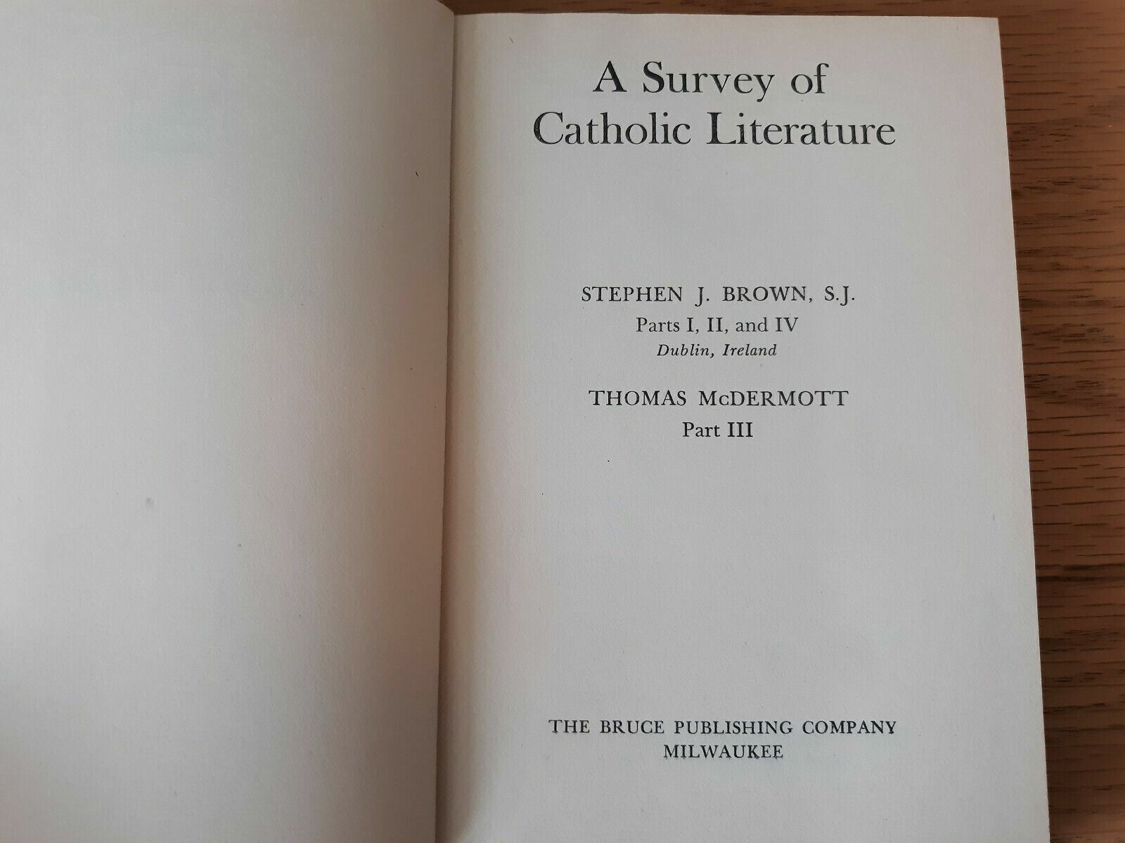 A Survey of Catholic Literature Revised Edition HC 1949 by Brown And McDermott