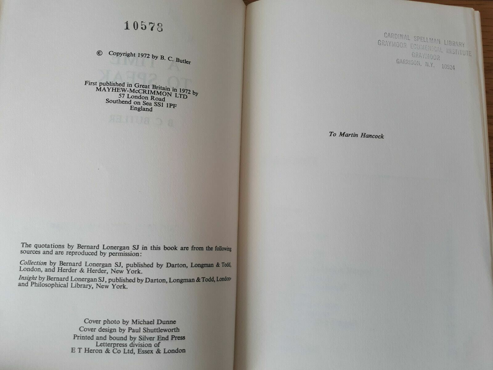 A Time to Speak Hardcover 1972 by Basil Christopher Butler (Author)