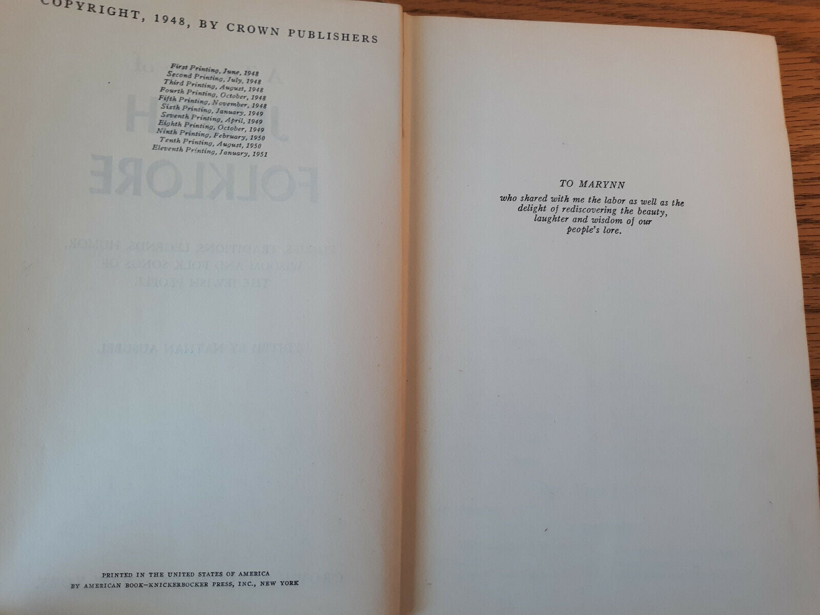 A Treasury Of Jewish Folklore Nathan Ausubel 1951 Hardcover Crown Publishers