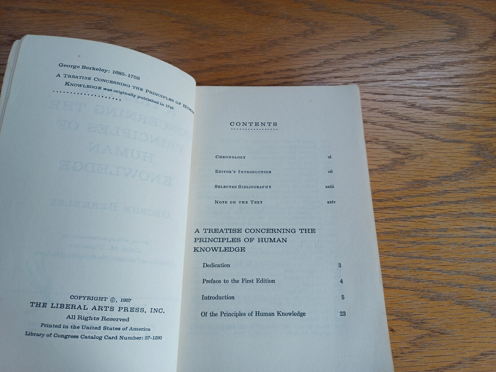 A Treatise Concerning the Principles of Human Knowledge George Berkeley 1957 Bobbs-Merrill