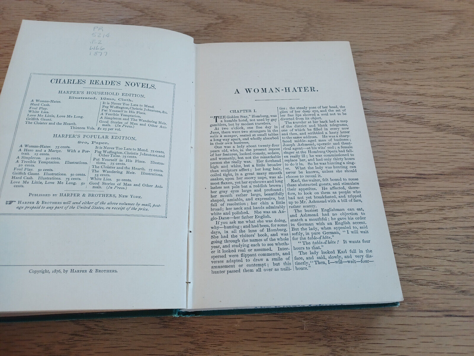 A Woman Hater A Novel By Charles Reade Household Ed 1877