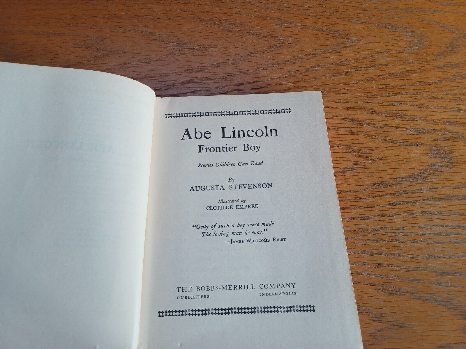 Abe Lincoln Frontier Boy Augusta Stevenson 1953 Hardcover Bobbs-Merrill
