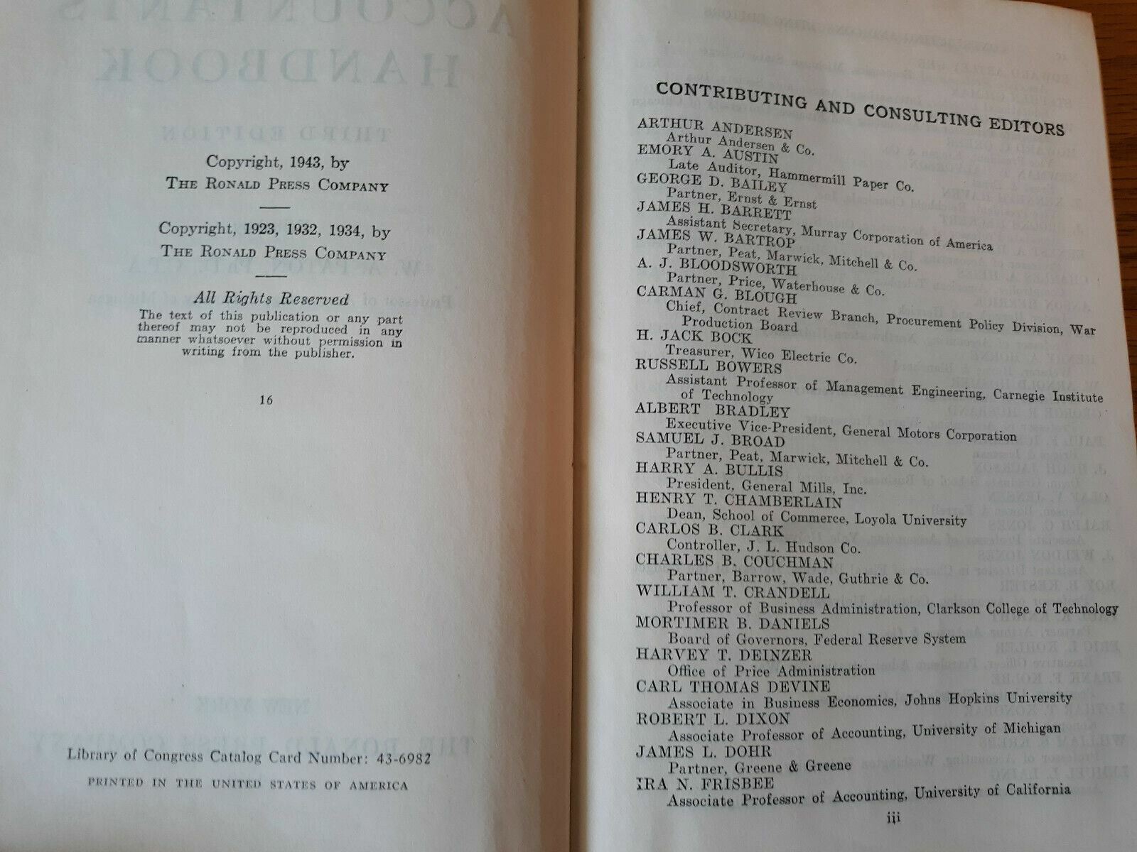 Accountants Handbook Third Edition W A Paton Editor Ronald Press Company 1952