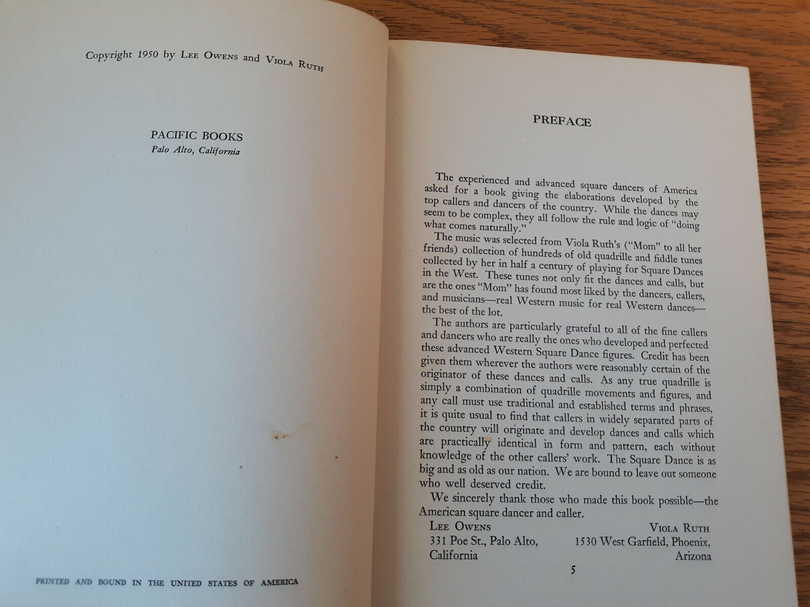 Advanced Sqaure Dance Figures Of The West And Southwest Lee Owens 1950 Pacific Books