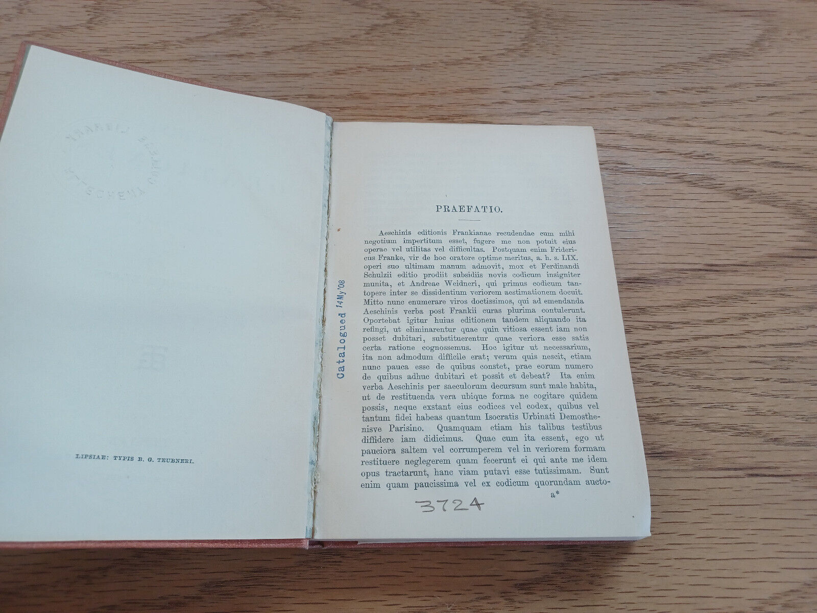 Aeschinis Orationes Post Fr Frankium Fridericus Blass 1896