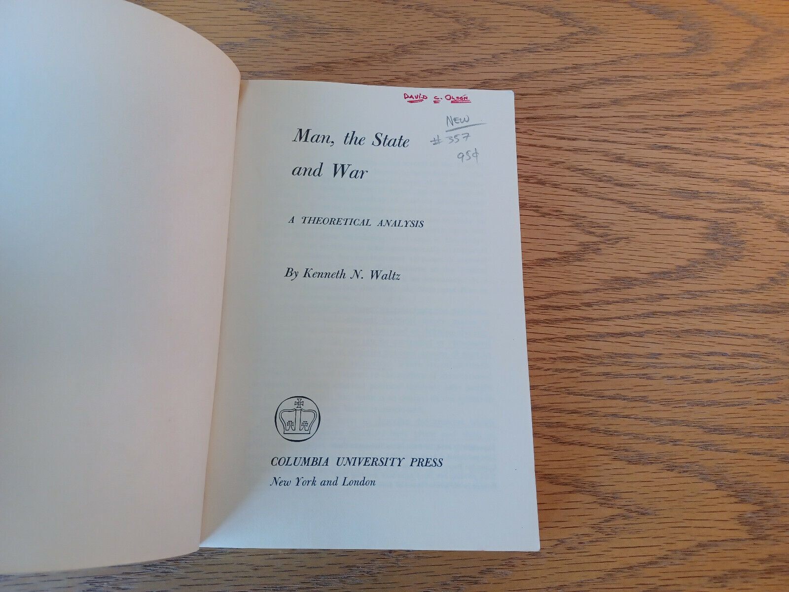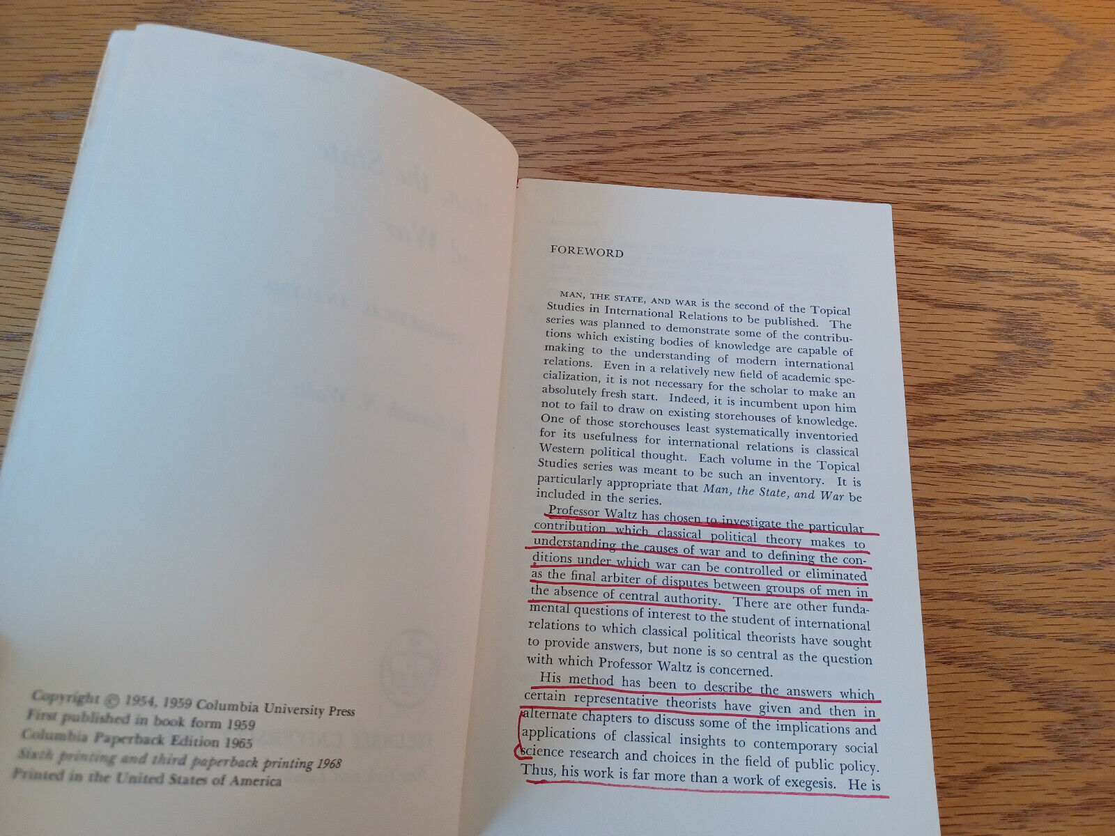 Man The State And War Kenneth N Waltz 1965 Columbia University Press Paperback