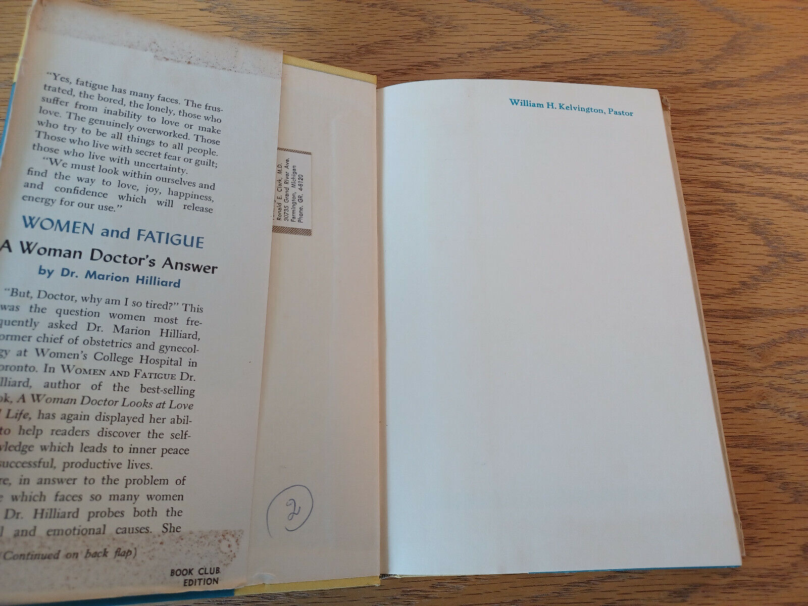 Women And Fatigue Dr Marion Hilliard 1960 Book Club Edition Hardcover Dust Jacke