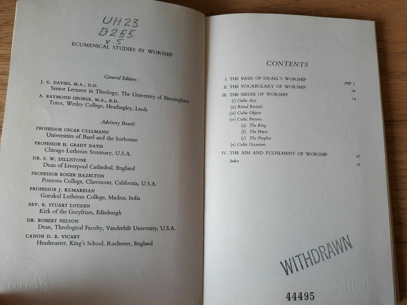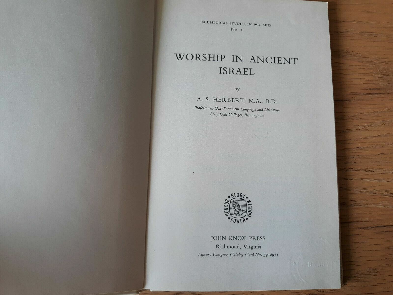 Worship in Ancient Israel Ecumenical Studies in Worship No 5 A. S. Herbert